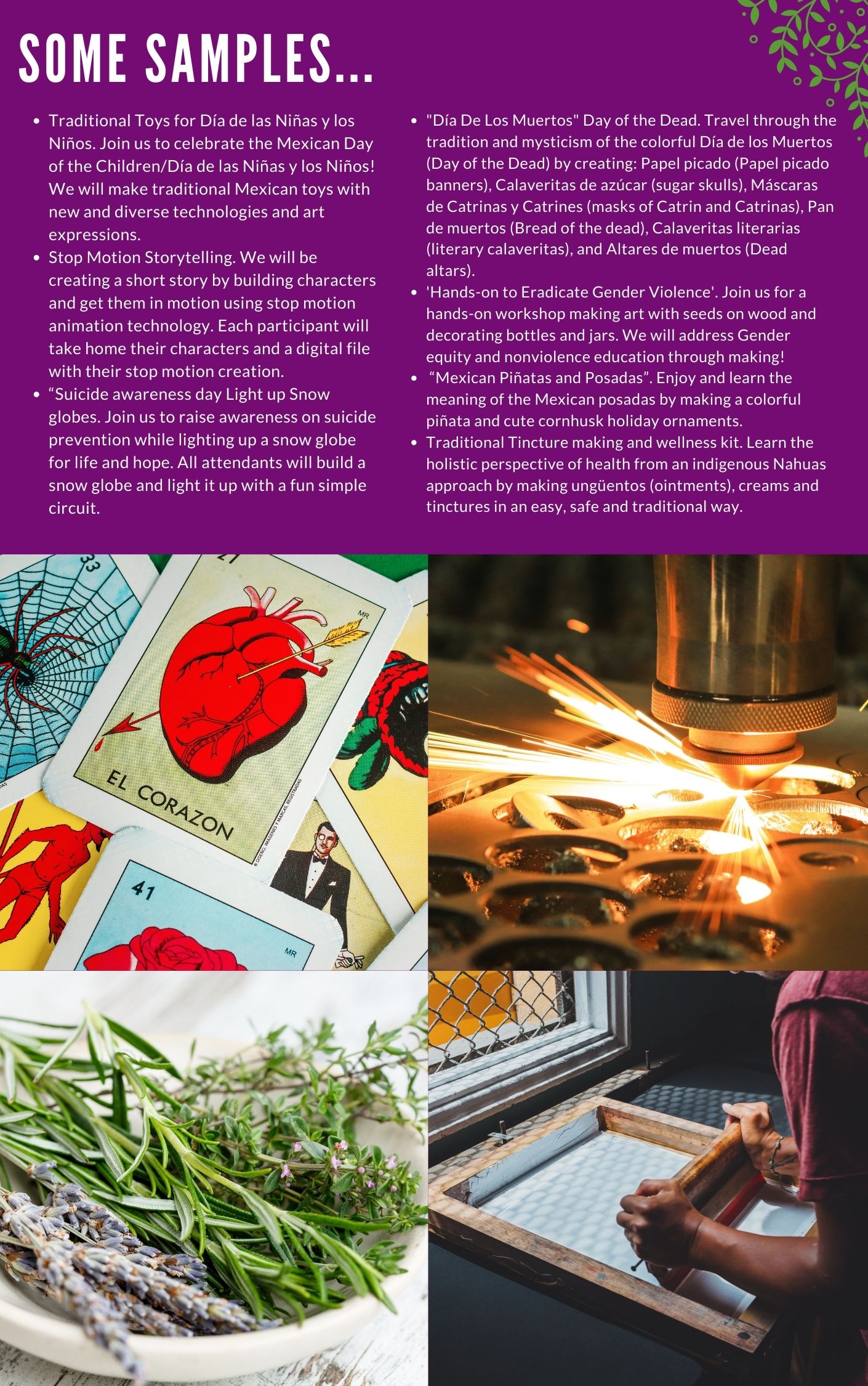 We offer a range of community-centered classes and workshops that integrate art, science, technology, and culture to promote social and environmental justice.